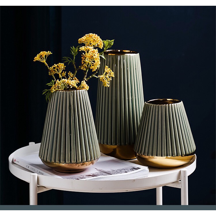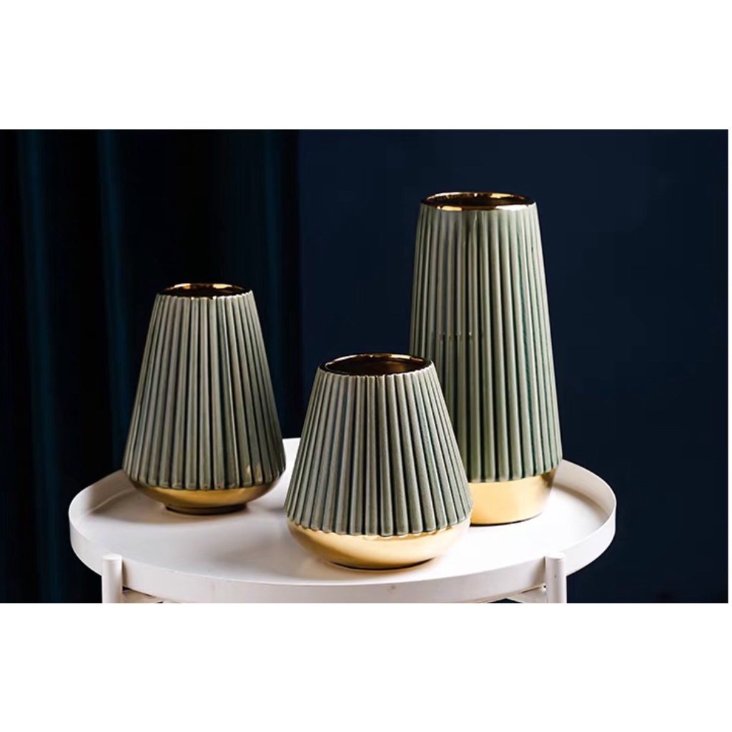 Giới thiệu Lọ hoa xanh mint viền vàng, nhiều size màu sắc tinh tế, cắm được nhiều dáng hoa