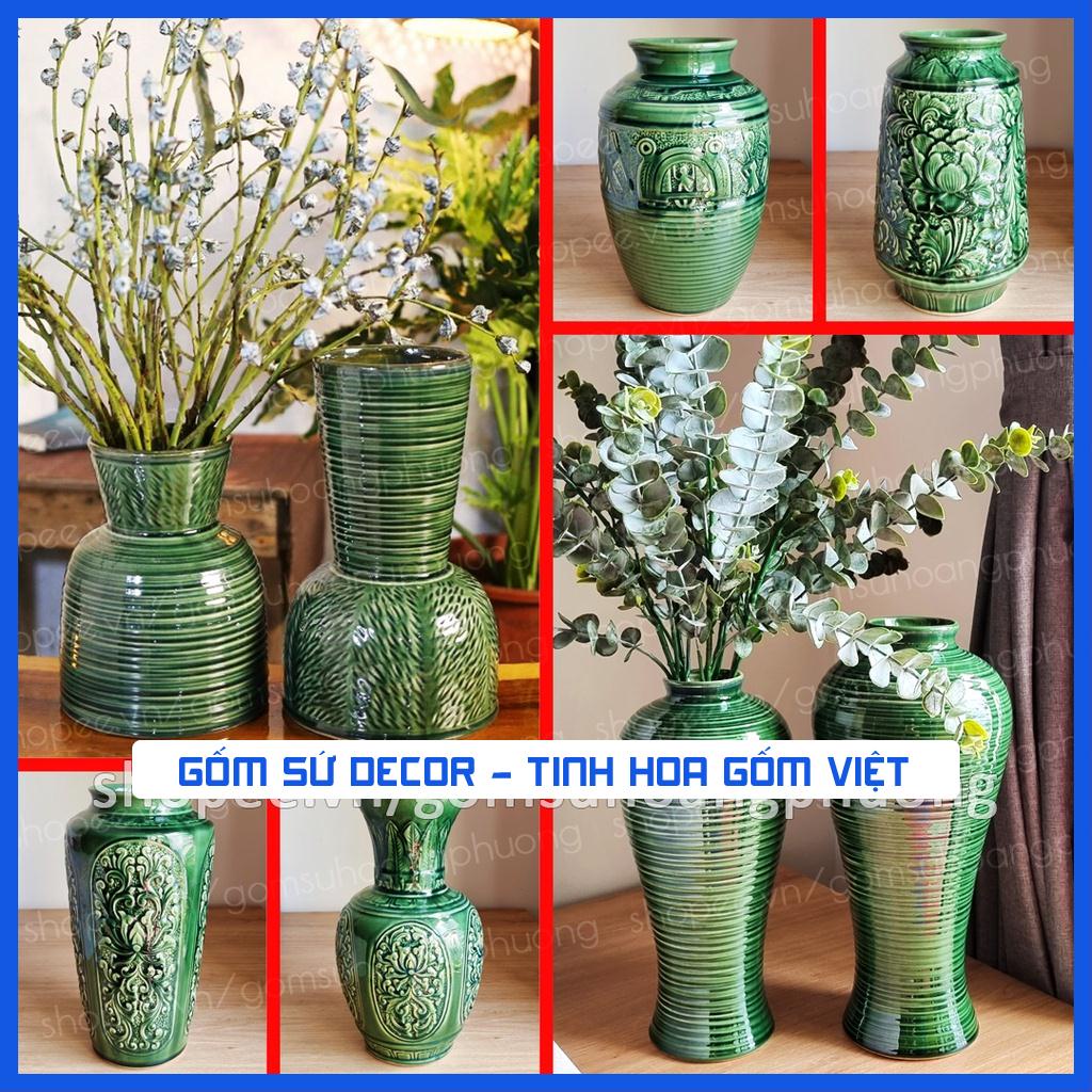 Nhà cửa & Đời sống > Trang trí nhà cửa > Bình trang trí || Lọ hoa xanh ngọc khắc nổi cỡ lớn - Gốm sứ Bát TràngCòn hàng