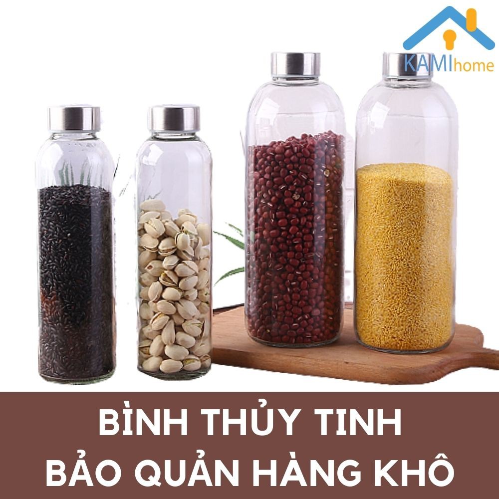 Nhà cửa & Đời sống > Bộ đồ bàn ăn > Bình nước & phụ kiện || Lọ hũ thủy tinh đựng bảo quản đồ khô và bình uống nước có nắp 450ml mã 22029Còn hàng