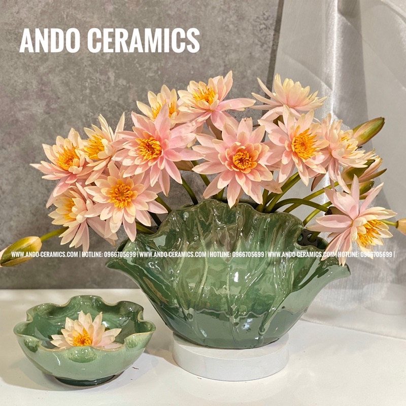 Lọ Lá Sen - Lọ Gốm sứ Bát Tràng 2 màu cực đẹp