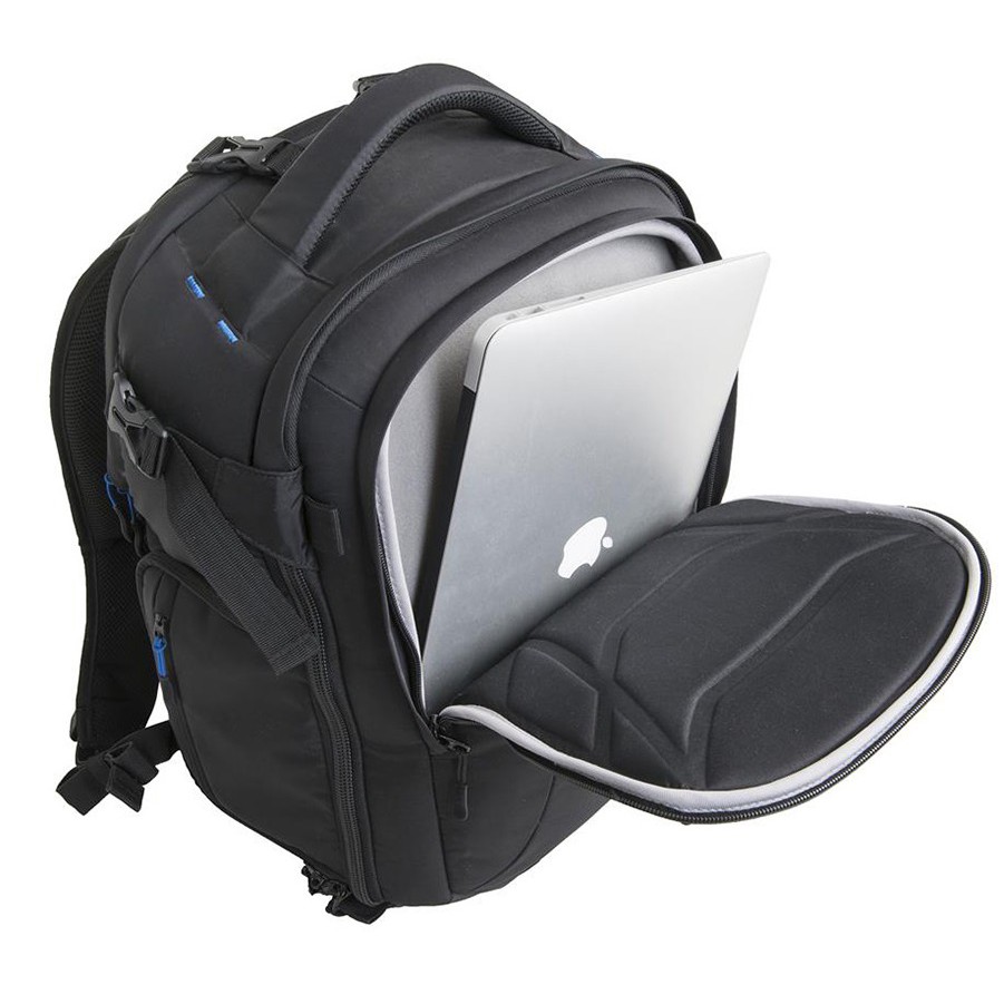 Bên hông trái có thiết kế nắp mở giúp lấy nhanh máy ảnh khi cần. Mặt trước túi có với lớp cách dày giúp bảo vệ máy ảnh và laptop của bạn không bị va chạm, chấn động khi vận động.