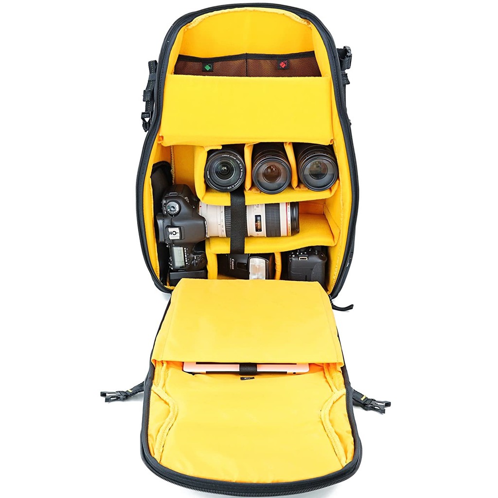 - Sức chứa: 1-2 thân máy DSLR, 3-5 ống kính, đèn flash, laptop 15 inches
