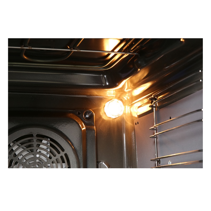 - Cửa kính trong suốt 3 lớp cách nhiệt giúp nhiệt độ bên ngoài mặt kính rất an toàn cho trẻ em và người sử dụng. Kết hợp với đèn trong khoang lò có thể bật hoặc tắt, tiện lợi quan sát quá trình nướng thực phẩm mà không cần mở cửa.