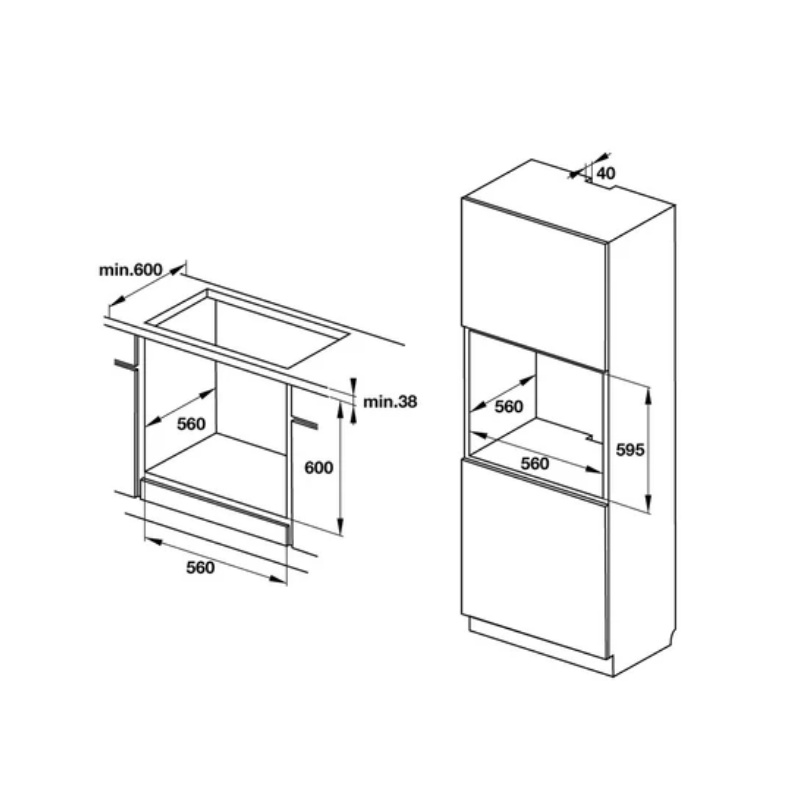 Kích thước hộc tủ: 595C x 560R x 560S mm