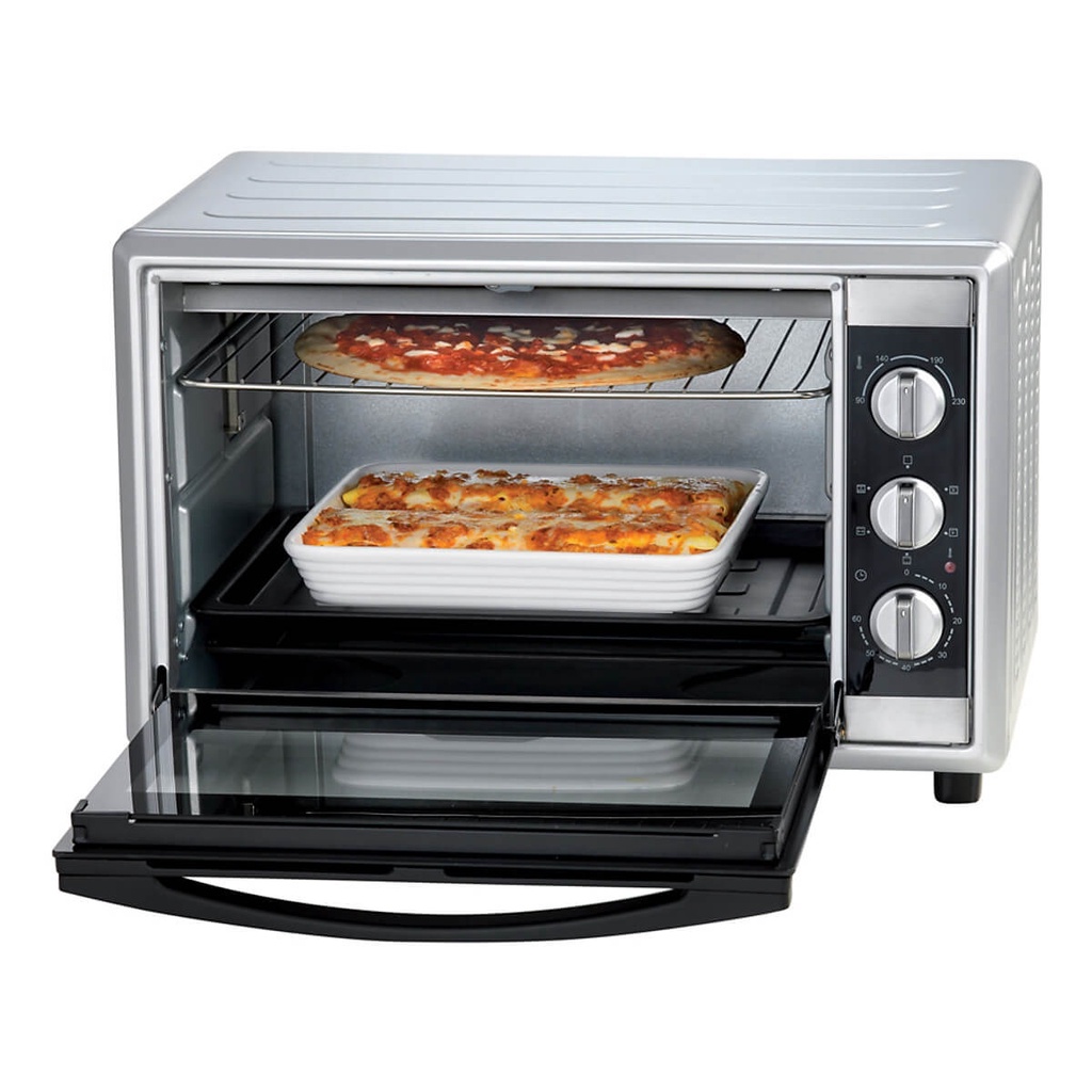 Ariete MOD 0986 trang bị núm điều khiển cơ với 3 núm chính để người dùng tùy chỉnh cũng như thiết lập chế độ nướng cho lò. Lò nướng Ariete MOD 0986 có 4 mức nhiệt độ: 90 độ, 140 độ, 190 độ, 230 độ cùng 6 mức hẹn giờ: 10-20-30-40-50-60 phút chắc chắn sẽ là lựa chọn cho gia đình bạn.