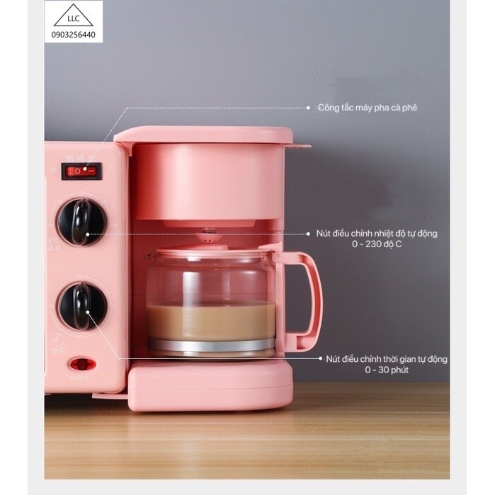 Lò Nướng Bánh Đa Năng 3 in 1 rán, nướng, pha cafe, tặng nắp đậy thủy tinh cao cấp