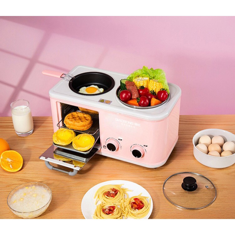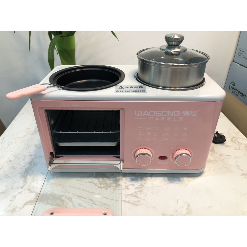 Lò nướng bánh, rán hấp xào nướng nấu 4 in 1 đa năng, tặng kèm bộ phụ kiện buộc tóc
