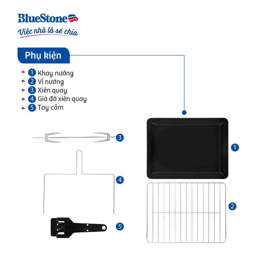 - Với sự hiện đại từ thiết kế, tiên lợi và an toàn từ tính năng, lò nướng BlueStone chắc hẳn là một ""trợ thủ"" sẻ chia đắc lức công việc nấu nướng, mang đến cho gia đình những món nướng thơm ngon và những phút giây hạnh phúc bên mân cơm nhà.