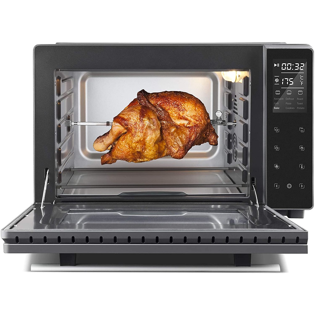 - Bộ phụ kiệm kèm theo: Xiên nướng, khay nướng chống dính, khay nướng bánh, khay hứng mỡ.