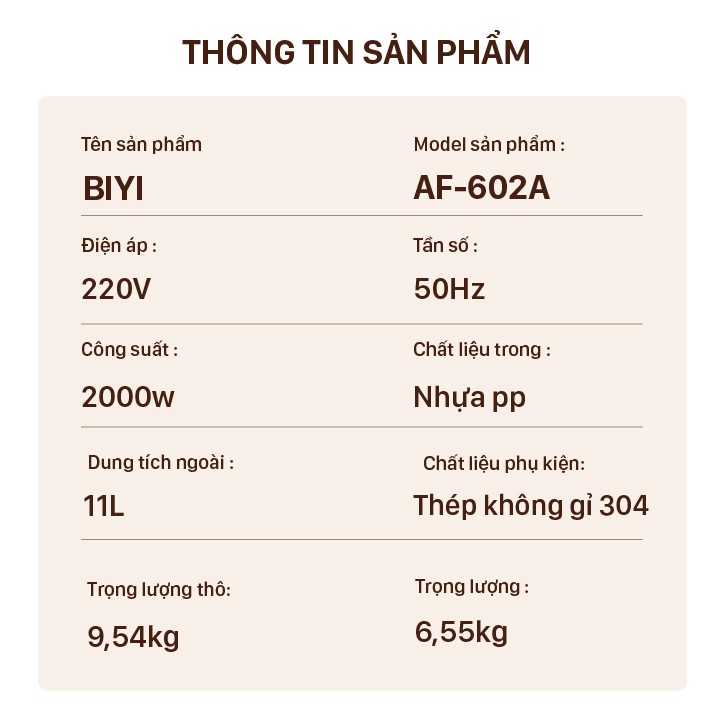 Giới thiệu Nồi chiên không dầu 6 món BIYI AF602A ( 11 L) - BH 12 tháng