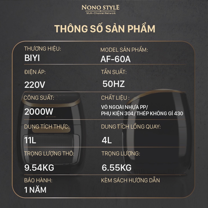 Tên sản phẩm: Nồi Chiên Không Dầu,BIYI AF-60A