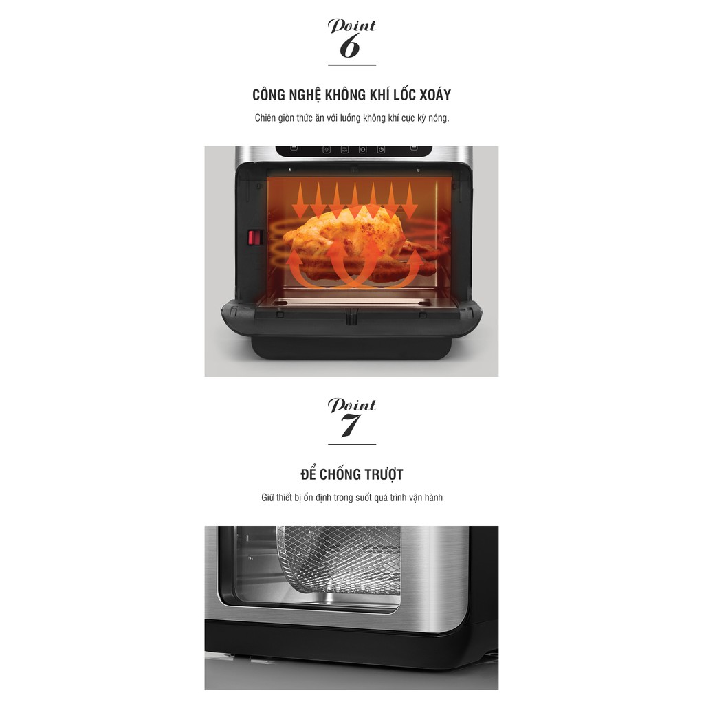 - Công nghệ không khí lốc xoáy - Chiên giòn thức ăn với luồng không khí cực kỳ nóng