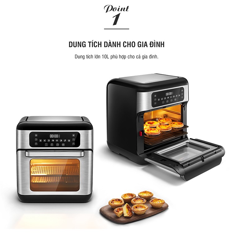 - Dung tích lớn 10lít, giúp chế biến nhiều món ăn