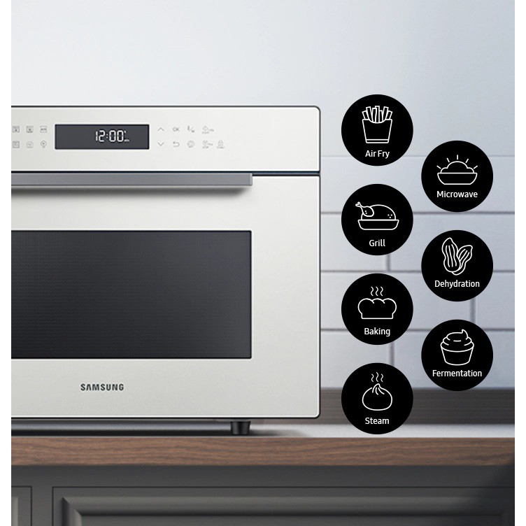 Lò vi sóng đa năng BESPOKE dòng đối lưu tích hợp nhiều tính năng chuyên biệt như Chiên không dầu, Nướng, Hấp, Vi Sóng, Sấy Khô và Ủ lên men sữa chua mang đến sự tiện lợi cho người dùng.