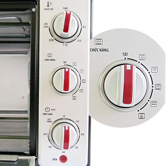 - Lò nướng được trang bị đèn chiếu sáng bên trong là rất cần thiết cho nhu cầu nướng bánh. Bạn có thể dễ dàng quan sát thực phẩm đang nướng bên trong để đảm bảo thức ăn được thực hiện đúng cách.