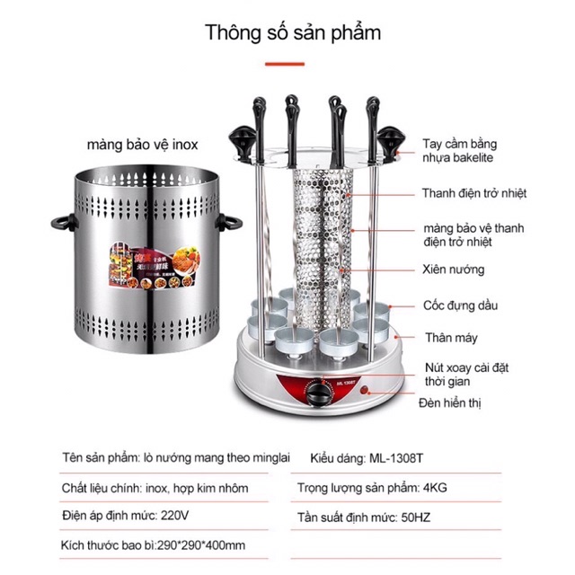 It smart - Bộ lò nướng điện 8 xiên nướng Cao cấp tại nhaTên sản phẩm : lò nướng mang theo tiện Dụng
