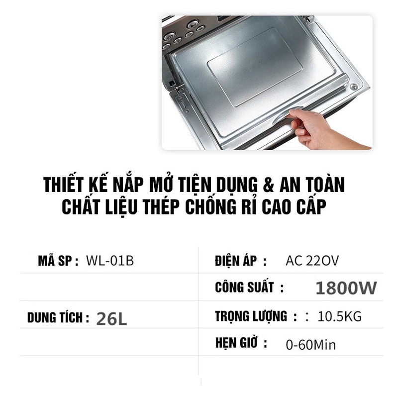 Thiết Bị Điện Gia Dụng > Đồ gia dụng nhà bếp > Lò vi sóng || Lò nướng điện cao cấp MKMAOKE 24L, model WL-O1B, 6 chức năng trong 1, bảo hành chính hãng 12 thángCòn hàng