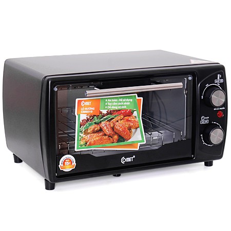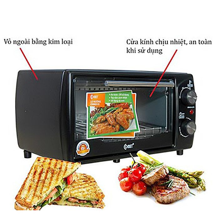 - Lò nướng điện 10 lít Comet CM6510 chuyên dụng để nướng bánh. Đặc biệt là làm nóng hay làm giòn vỏ bánh mì hay bánh mì sandwich, hay dùng hâm nóng bánh pizza. Tuy kích thước nhỏ, công suất 1300 W, nhưng lò có thể dùng để hâm nóng, rã đông thức ăn, nướng lượng nhỏ thực phẩm, gà nguyên con chặt góc tư, thịt bít tết, đều có thể cho vào vừa vặn trong lò.