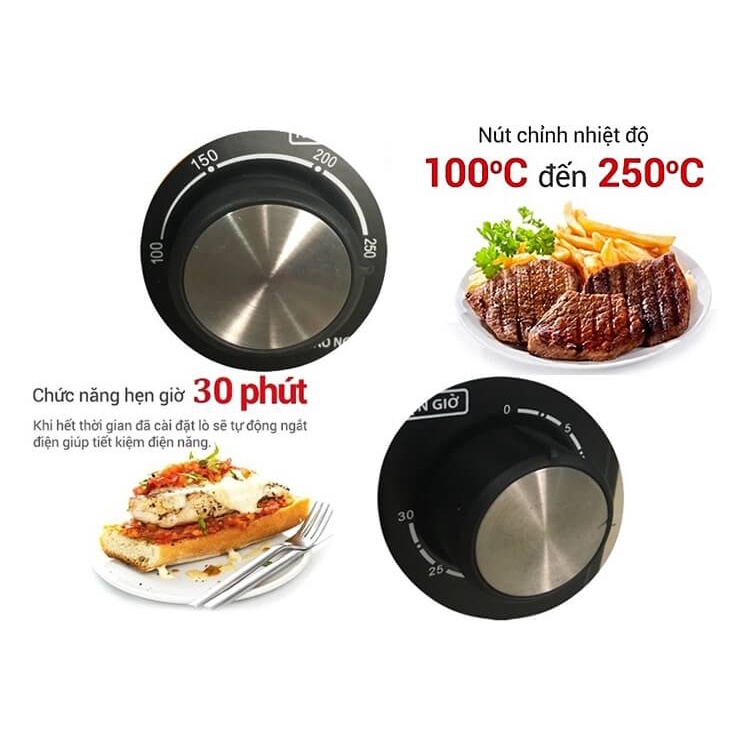 Thời gian hẹn giờ có thể được cài đặt lên đến 30 phút để bạn có thể linh hoạt sắp xếp công việc, tiết kiệm tối đa thời gian. Ngoài ra, khi hết thời gian được hẹn, lò sẽ tự động ngắt điện giúp tiết kiệm điện năng.