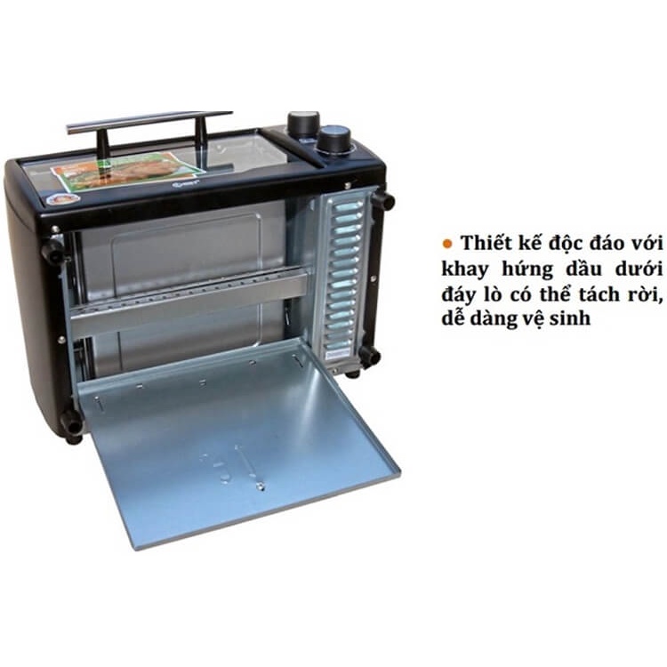 Lò nướng được thiết kế với 4 chân nhỏ giúp tạo khoảng cách an toàn giữa máy với mặt phẳng, tránh những trường hợp bị chập điện do ngập nước.