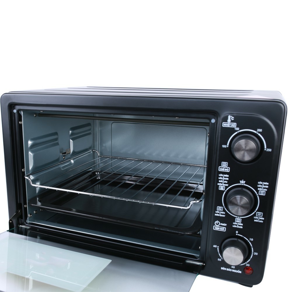 - Lò nướng được thiết kế nắp an toàn của lò nướng thủy tinh cùng với giá đỡ và tự ngắt điện khi mở nắp sẽ đảm bảo chất lượng và mùi vị của món ăn cũng như an toàn trong sử dụng. Tay cầm inox thuận tiện sử dụng.
