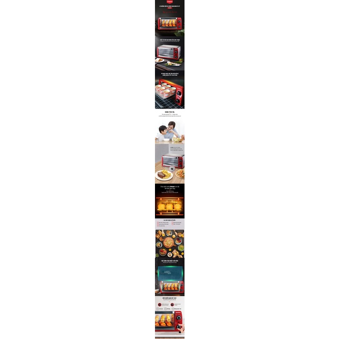 Thiết bị với dung tích 10L, không gian lò nướng vừa phải để nướng được nhiều loại thực phẩm cũng như các loại nguyên liệu dạng khối như gà chặt góc tư. Với không gian thoải mái, bạn có thể chuẩn bị bữa ăn đa dạng và ngon miệng cho cả gia đình.
