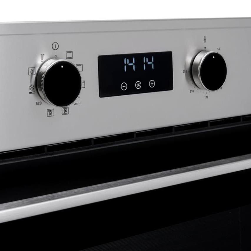 - Bảng điều khiển bằng cảm ứng màn hình LCD kết hợp nút vặn 09 chức năng nướng, bao gồm chức năng rã đông và nướng ECO.