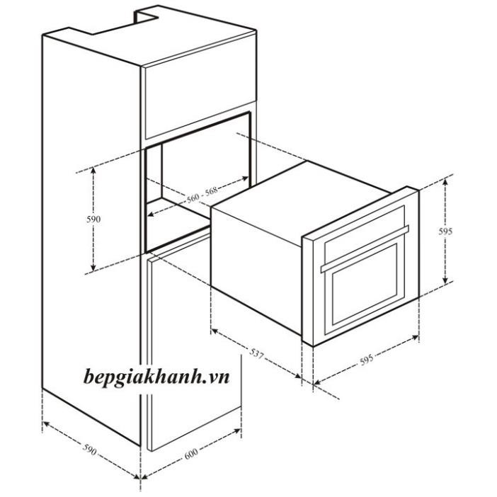 - Kích thước lò (C x R x S): 595 x 595 x 537 mm