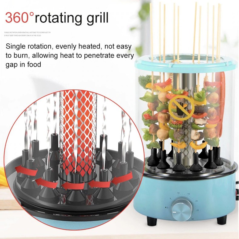Lò Nướng Điện Dạng Đứng HÌnh Trụ Tự Động Xoay 360° 12 Xiên