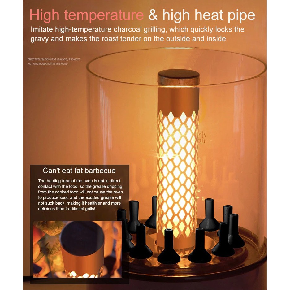 - Lò Nướng Điện Tự Động Xoay 360° 12 Xiên được trang bị ống truyền nhiệt nướng trực tiếp được bảo quản bằng một lớp bảo vệ bằng kim loại. Bạn có thể an tâm hơn trong quá trình sử dụng sản phẩm.