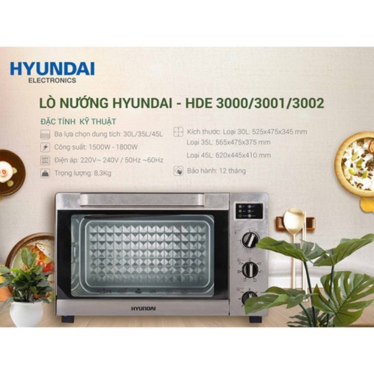 Lò Nướng Điện HYUNDAI HDE 3002S 45L - Lò Nướng Bánh Đa Năng - BẢO HÀNH CHÍNH HÃNG 12 THÁNG