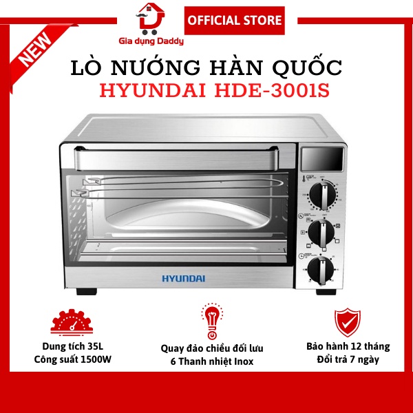 Giới thiệu Lò nướng điện Hyundai HDE 3001S, Dung tích 35L, Bếp nướng inox Hàn Quốc chính hãng, Bảo hành 12 tháng