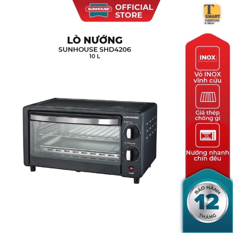 Lò nướng SUNHOUSE SHD4206 với dung tích 10L là lựa chọn tuyệt vời đối với những gia đình