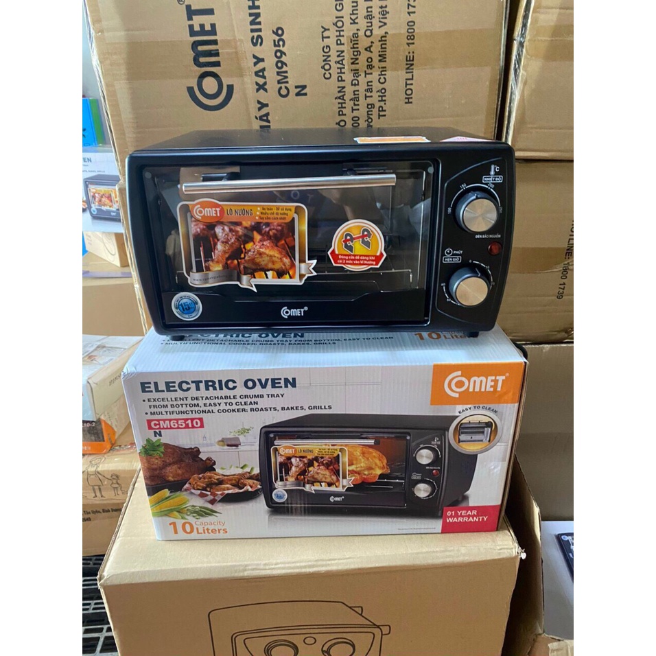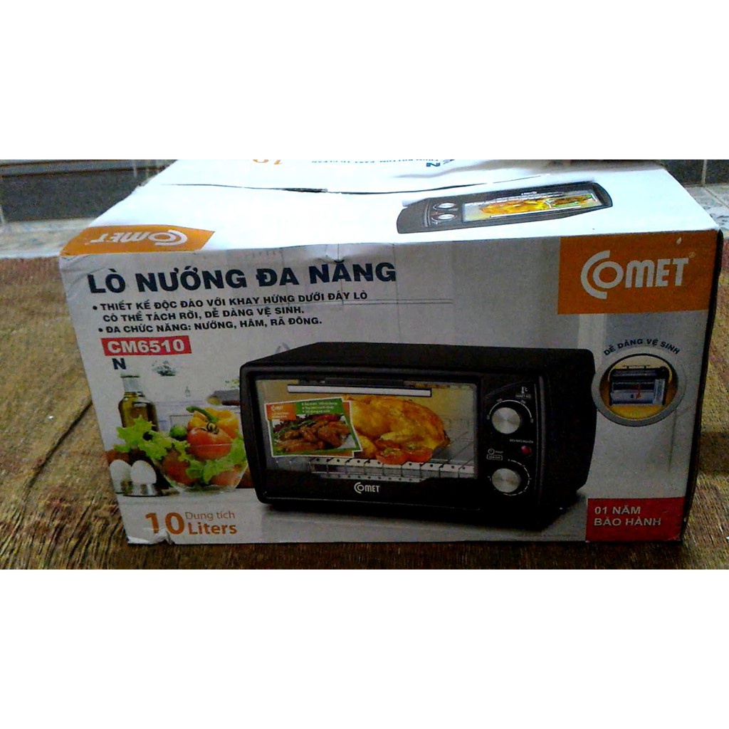 - Lò nướng điện 10 lít Comet CM6510 chuyên dụng để nướng bánh. Đặc biệt là làm nóng hay làm giòn vỏ bánh mì hay bánh mì sandwich, hay dùng hâm nóng bánh pizza. Tuy kích thước nhỏ, công suất 1300 W, nhưng lò có thể dùng để hâm nóng, rã đông thức ăn, nướng lượng nhỏ thực phẩm, gà nguyên con chặt góc tư, thịt bít tết, đều có thể cho vào vừa vặn trong lò.