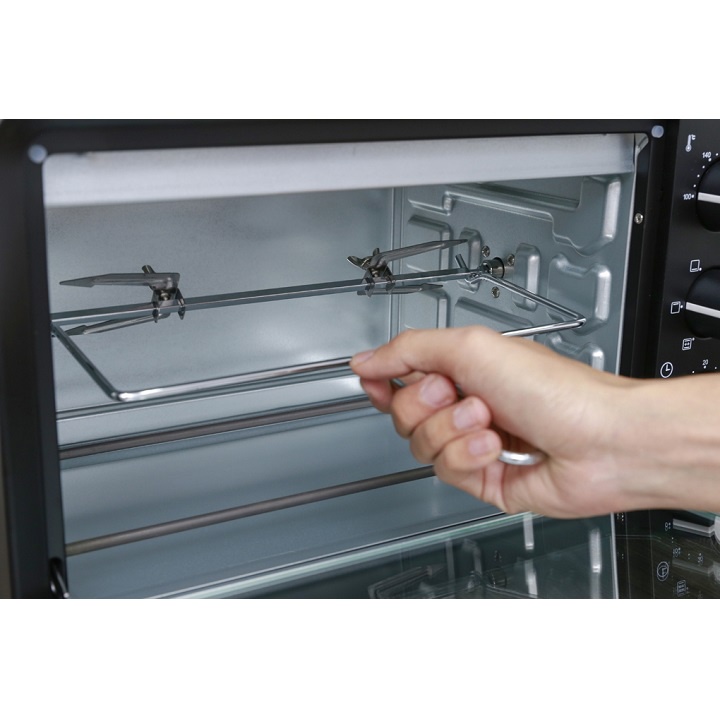 + Đi kèm lò có khay nướng, xiên quay, vỉ nướng, tay cầm vỉ nướng, tay cầm xiên quay.