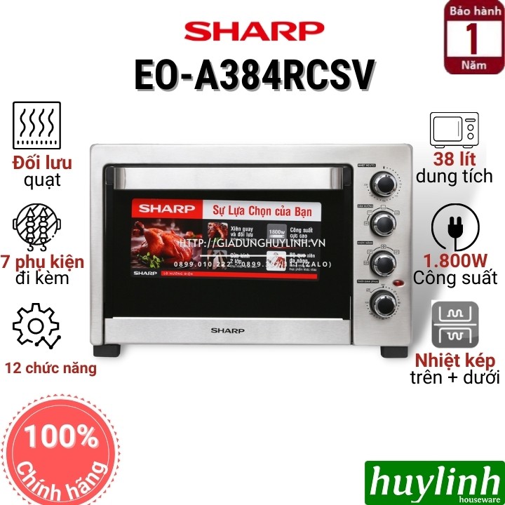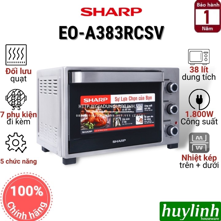 Lò nướng Sharp EO-A383RCSV-ST với 5 chức năng nướng, dung tích 38 lít, có khả năng hẹn giờ tối đa 120 phút, hoạt động với công suất 1800WHuy Linh phân phối và bảo hành chính hãng tại Sharp Việt Nam