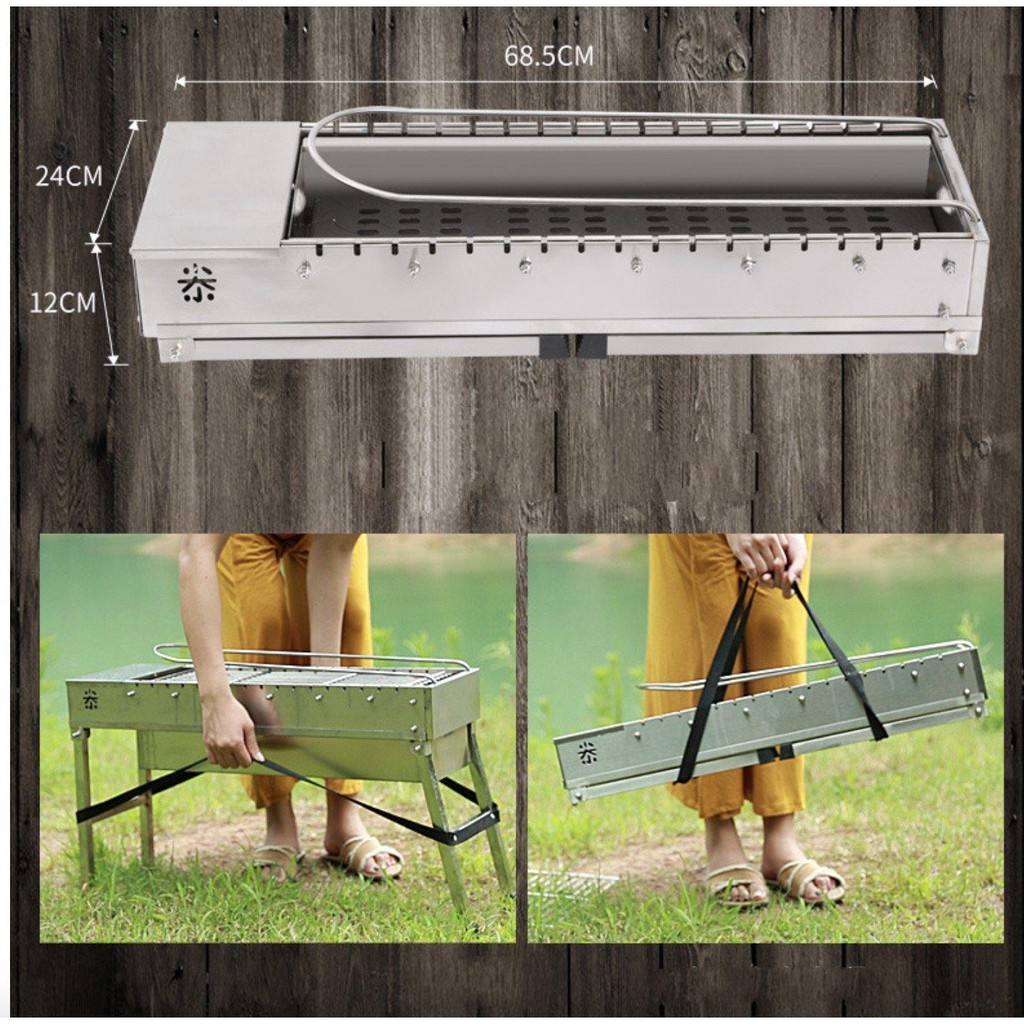 Tên sản phẩm : Bếp nướng than tự động USA BBQ Outdoor (tặng túi phụ kiện full)Kích thước xếp gọn: 68.6 x 24 x 12cm (D x R x C)