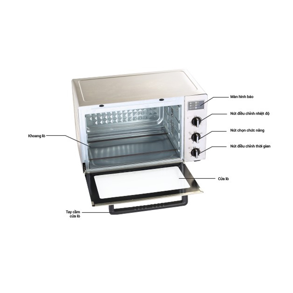- Đèn trong lò giúp dễ dàng quan sát thực phẩm trong quá trình nướng.