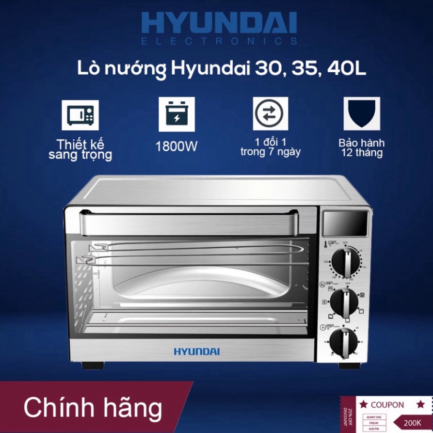 Thiết Bị Điện Gia Dụng > Đồ gia dụng nhà bếp > Lò nướng || Lò nướng Hyundai HDE 3000S, Dung tích 30L hàng chính hãngCòn hàng