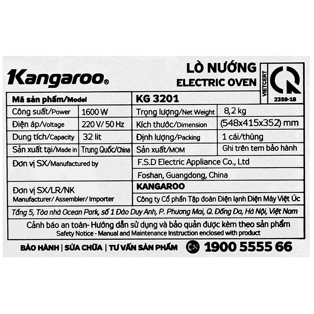 [Mã ELHADEV giảm 4% đơn 300K] Lò nướng Kangaroo KG3201 32 lít