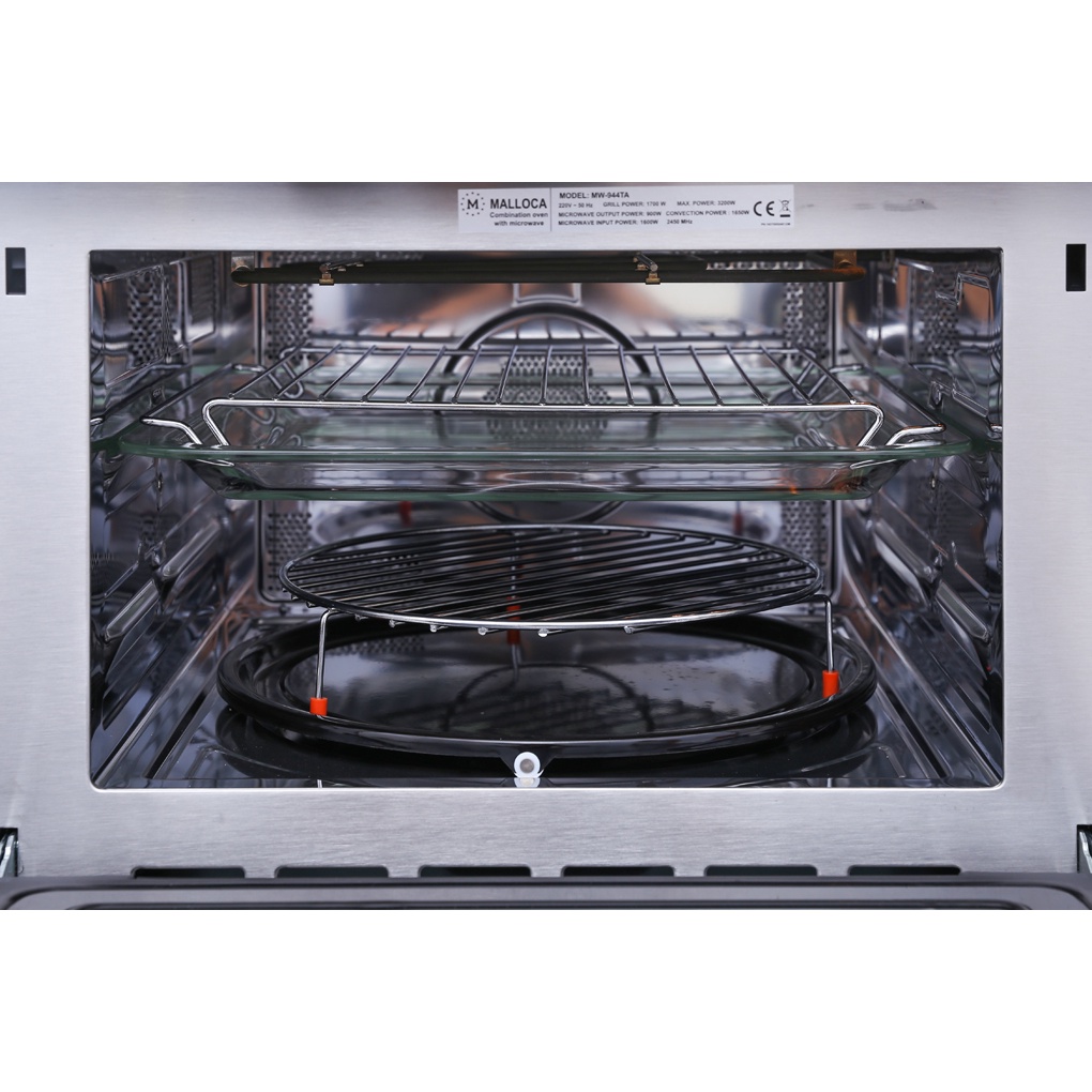 - Công suất lò cao: Lò nướng Malloca có dung tích đến 44L, đáp ứng được nhu cầu nấu nướng tần suất cao cũng như số lượng lớn của gia đình nhiều thành viên. Lò có công suất vi sóng vào 1600W, vi sóng ra 900W, công suất nướng 1700W, công suất đối lưu 1650W đảm bảo thời gian nấu nhanh, thực phẩm luôn ngon và giòn.