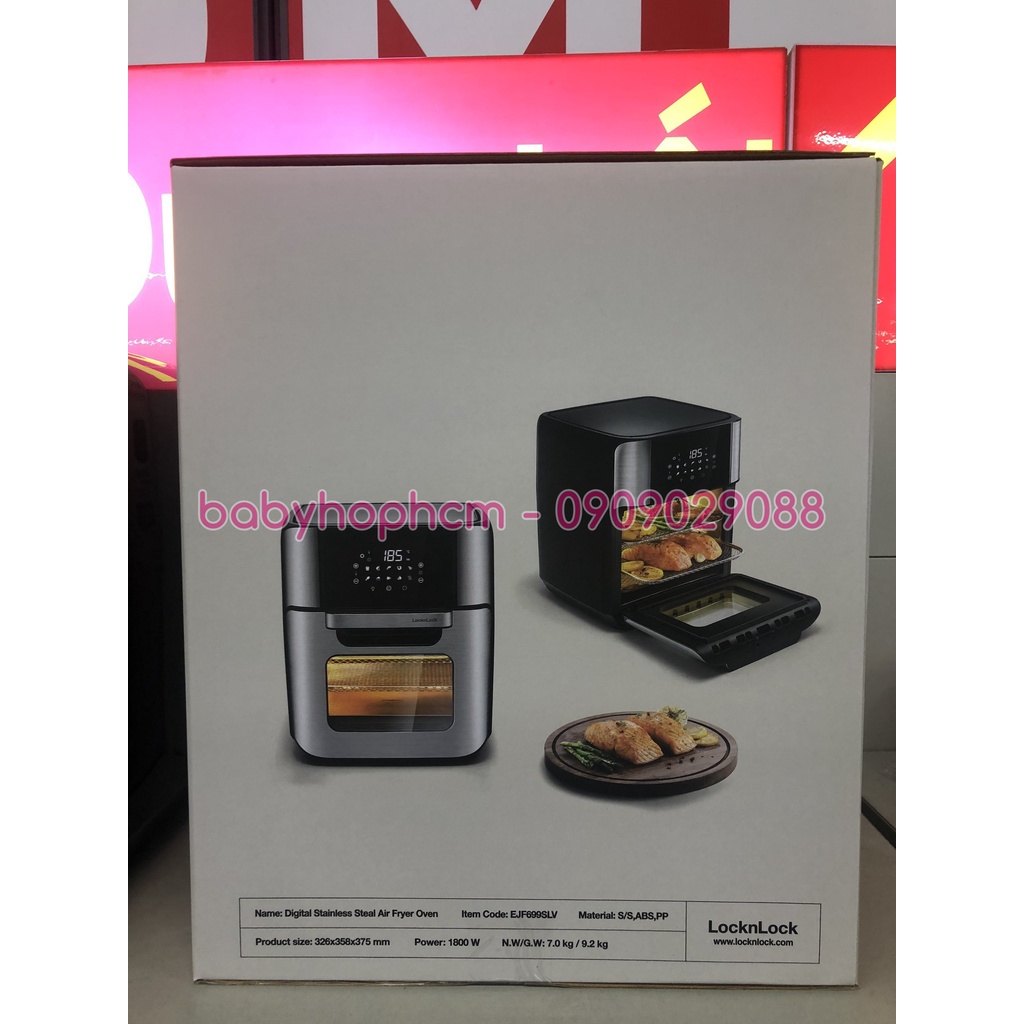 Lò Nướng Không Dầu THẾ HỆ MỚI LOCK&LOCK EJF699SLV Dung Tích Lớn 12L,1800W - Màu Bạc Sang Trọng, Cửa Kính Trong SuốtĐa chức năng: LÒ NƯỚNG + NỒI CHIÊN + VỈ NƯỚNG + CHẢO CHIÊN + LÒ SẤY Kính cường lực trong suốt, bền bỉ, an toàn, có thể trực tiếp quan sát quy trình chế biến món ăn Dung tích lớn 12 lít, bạn có thể dễ dàng chế biến các món ngon Bảng điều khiển màn hình LED cảm ứng hiển thị 10 chế độ nấu nướng khác nhau Công suất 1800W Nhiệt độ 80~200 độ C Kích thước 35.8 x 32.6 x 37.5 cm