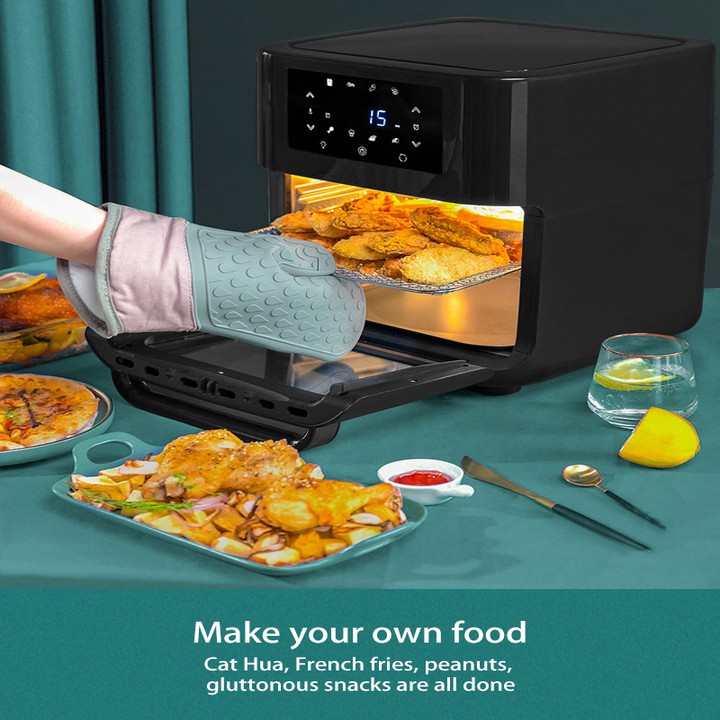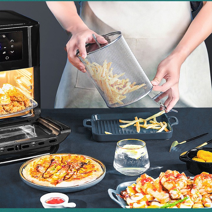 - Sản phẩm làm chín thực phẩm bằng các luồng khí nóng thay vì dầu nóng, giúp bạn chế biến món ăn lành mạnh hơn. Sản phẩm còn được trang bị bộ lọc mùi và khói. Là sự tổng hợp của nhiều thiết bị và dụng cụ nấu nướng, với bộ hẹn giờ kỹ thuật số được tích hợp chế độ tự động tắt.