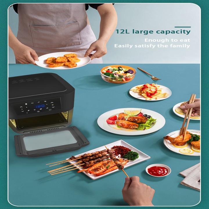 - Sản phẩm làm chín thực phẩm bằng các luồng khí nóng thay vì dầu nóng, giúp bạn chế biến món ăn lành mạnh hơn. Sản phẩm còn được trang bị bộ lọc mùi và khói. Là sự tổng hợp của nhiều thiết bị và dụng cụ nấu nướng, với bộ hẹn giờ kỹ thuật số được tích hợp chế độ tự động tắt.