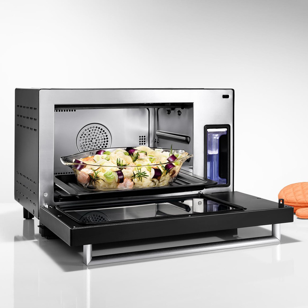 - Sự kết hợp hoàn hảo: Trong phục vụ chuyên nghiệp, lò hấp và lò nướng là không thể thiếu. Steam Chef từ Caso kết hợp cả hai thiết bị và do đó cung cấp một giải pháp nhỏ gọn và đặc biệt linh hoạt cho mọi căn bếp của gia đình.