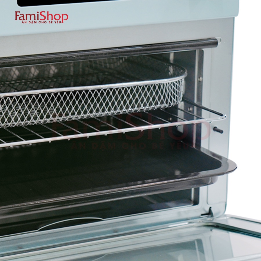 Công nghệ đốt nóng chân không với khí nóng lên đến 230o được thổi bằng quạt gió mạnh (300W) tạo luồng khí đối lưu 360o quanh thực phẩm giúp thực phẩm chính nhanh và chín đều tất cả các bề mặt.