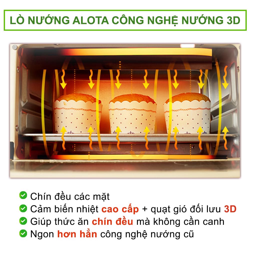 Thiết Bị Điện Gia Dụng > Đồ gia dụng nhà bếp > Lò nướng || Lò nướng mini ALOTA L07 12 Lít công nghệ 3D tiết kiệm điện tặng chổi quét dầu - 3B CareCòn hàng