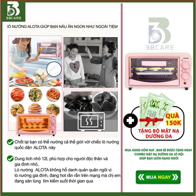 3B Care kính chào quý khách! Đây là Lò nướng mini ALOTA, bạn sẽ được đổi trả miễn phí nếu có lỗi từ NSX, giao hàng nhanh, xử lý đơn trong 2 giờ.