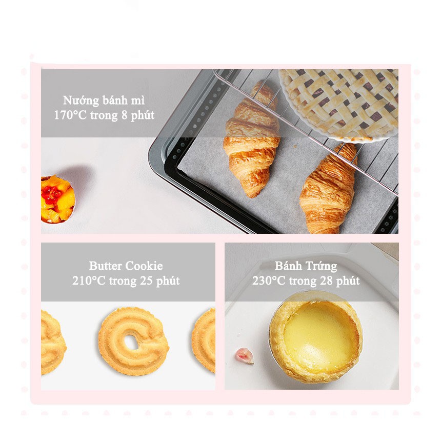 - Lò có thể điều chỉnh nhiệt độ từ 100 - 230 độ C và hẹn giờ tối đa 30 phút.