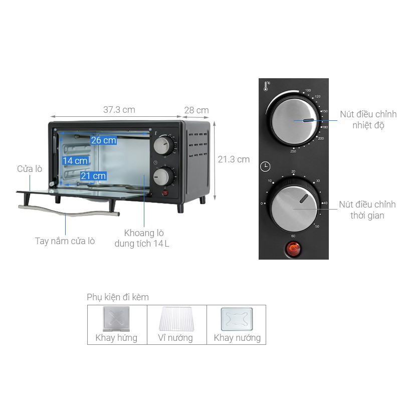 Lò nướng Mishio MK177 14L 900W – Màu đen có thông số kĩ thuật như sau:Model: MK-177
